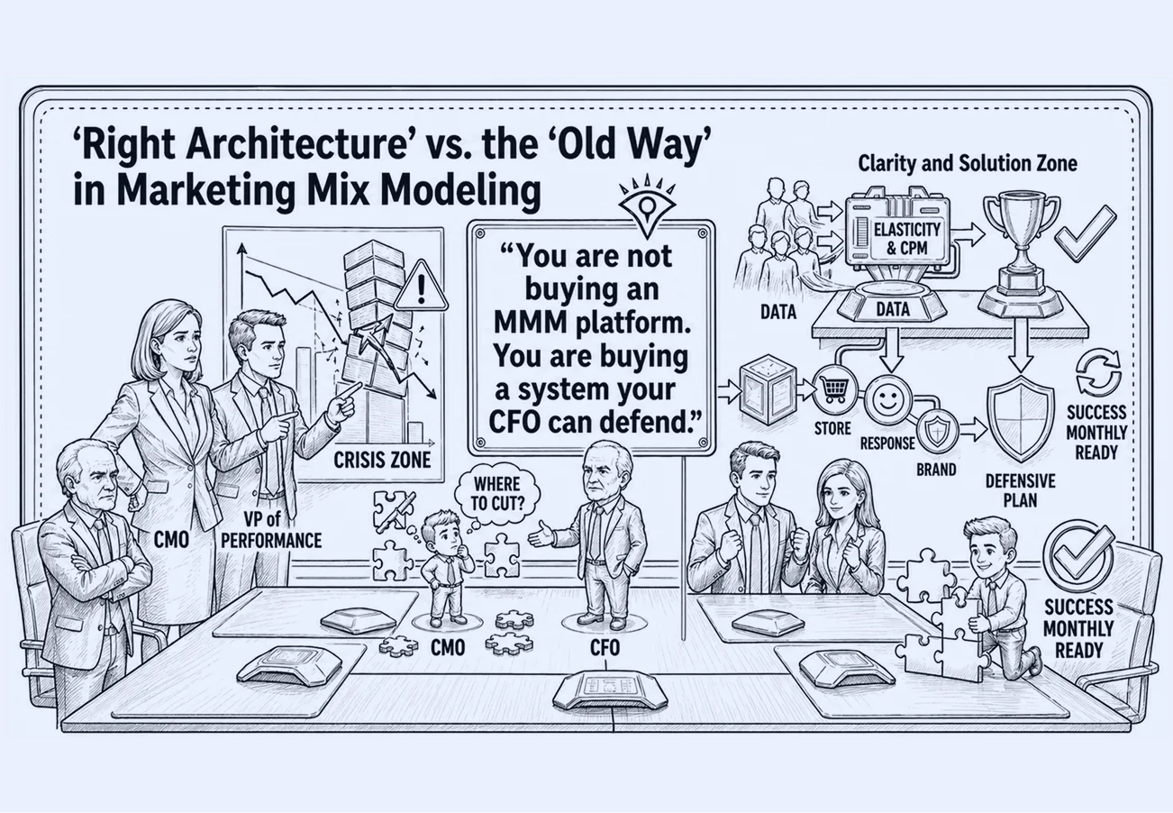The question assumes MMM is an expense line. The more precise question is what the current architecture is costing per year. A campaign reporting 14:1 ROAS and delivering 0.4:1 actual return is not a measurement imprecision. It is a budget decision made wrong for however many cycles the organization ran it. For an omnichannel brand, the visibility a correct MMM provides is not optional. The right architecture does not add to the cost of marketing. It reduces the cost of being wrong.
